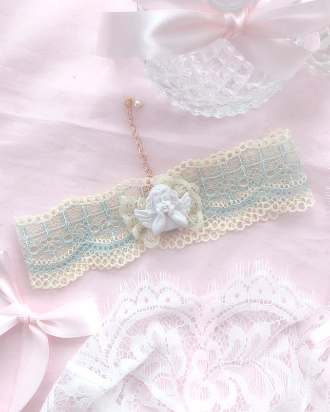 Be the first to review “Angelic Cream and Light Blue Lace Cupid Angel Choker Necklace Romantic pastel Cute Jewelry”