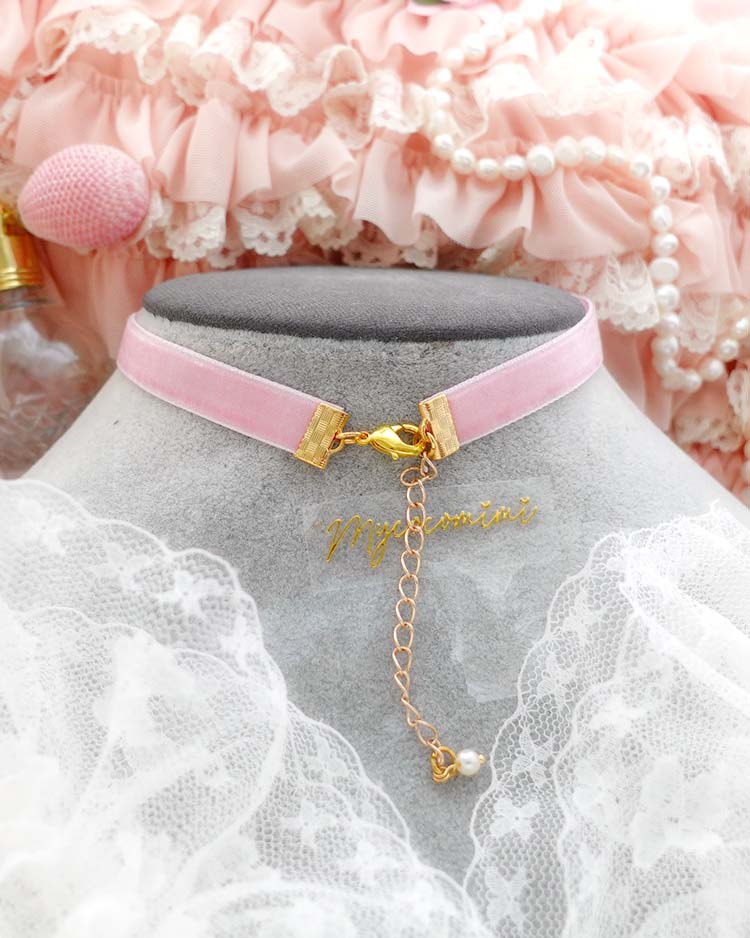 Be the first to review “Baby Pink Velvet Choker Necklace with Small Bow and Gold Bell , Tiny cute skinny choker necklace, coquette kitten play day collar”