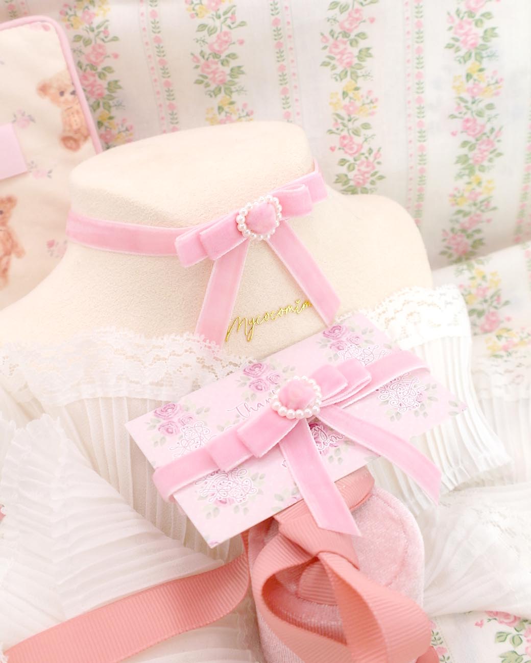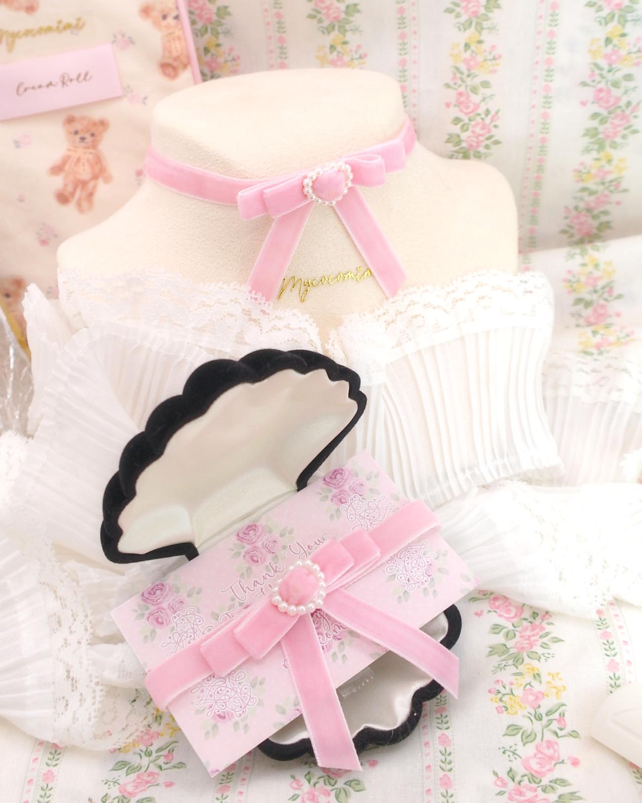 Be the first to review “Coquette baby pink velvet little bow choker necklace , faux pearl heart , soft girl core pastel day Skinny collar jewelry”