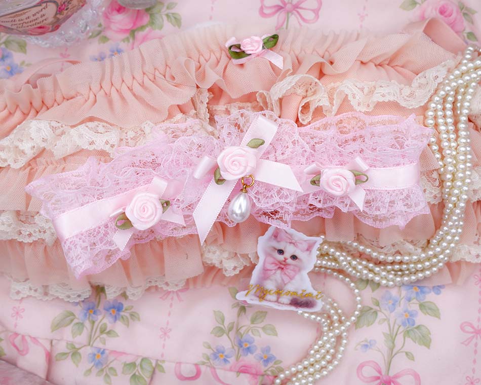 Coquette Fairy Core Flowers Baby Pink Lace Ruffles Choker Necklace, Bow Faux Pearl Charm , Soft Girl day collar