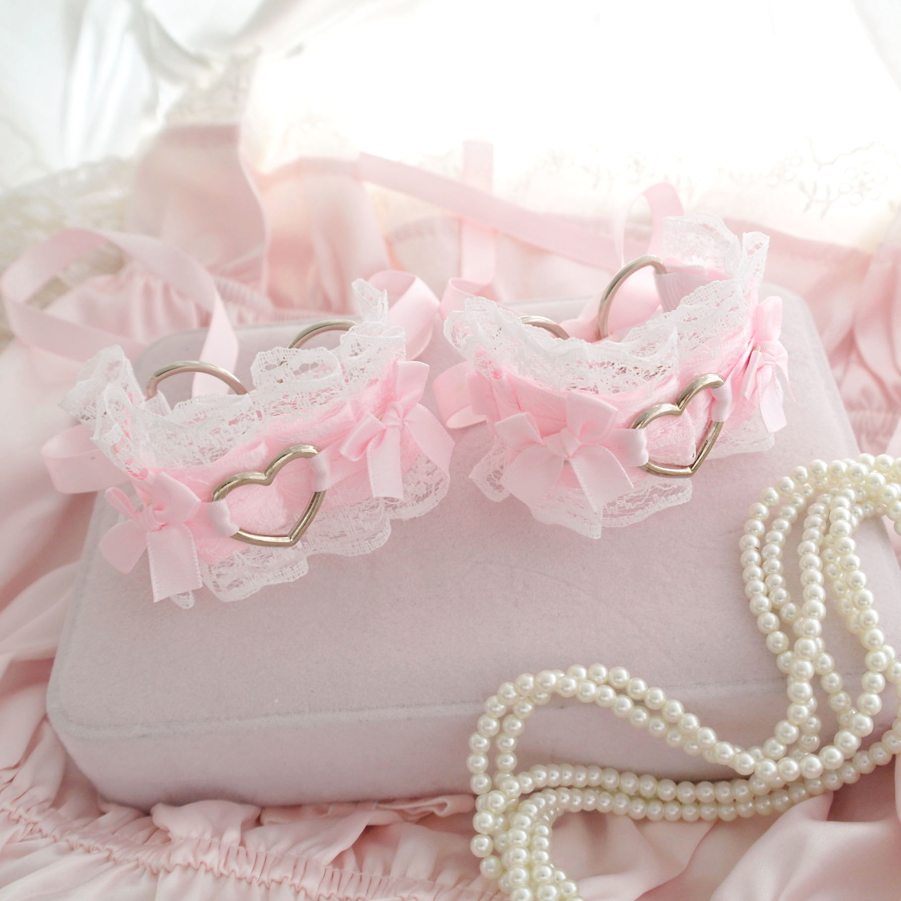 Be the first to review “Heart Lace Cuffs Bracelet 2 pcs Set , Kitten Pet Play Gear Wrist Cuffs White Lace Baby Pink Bow , Kawaii Pastel DDLG Accessories”