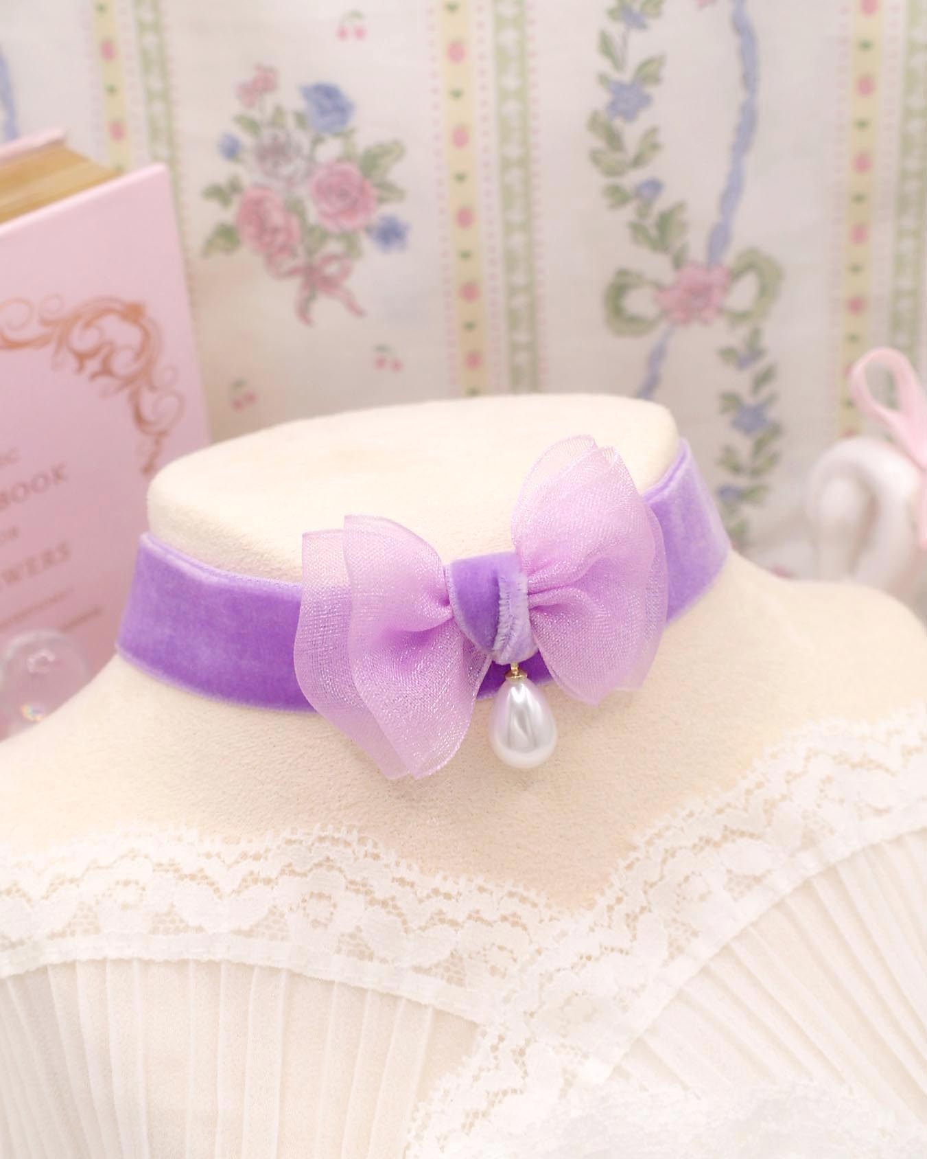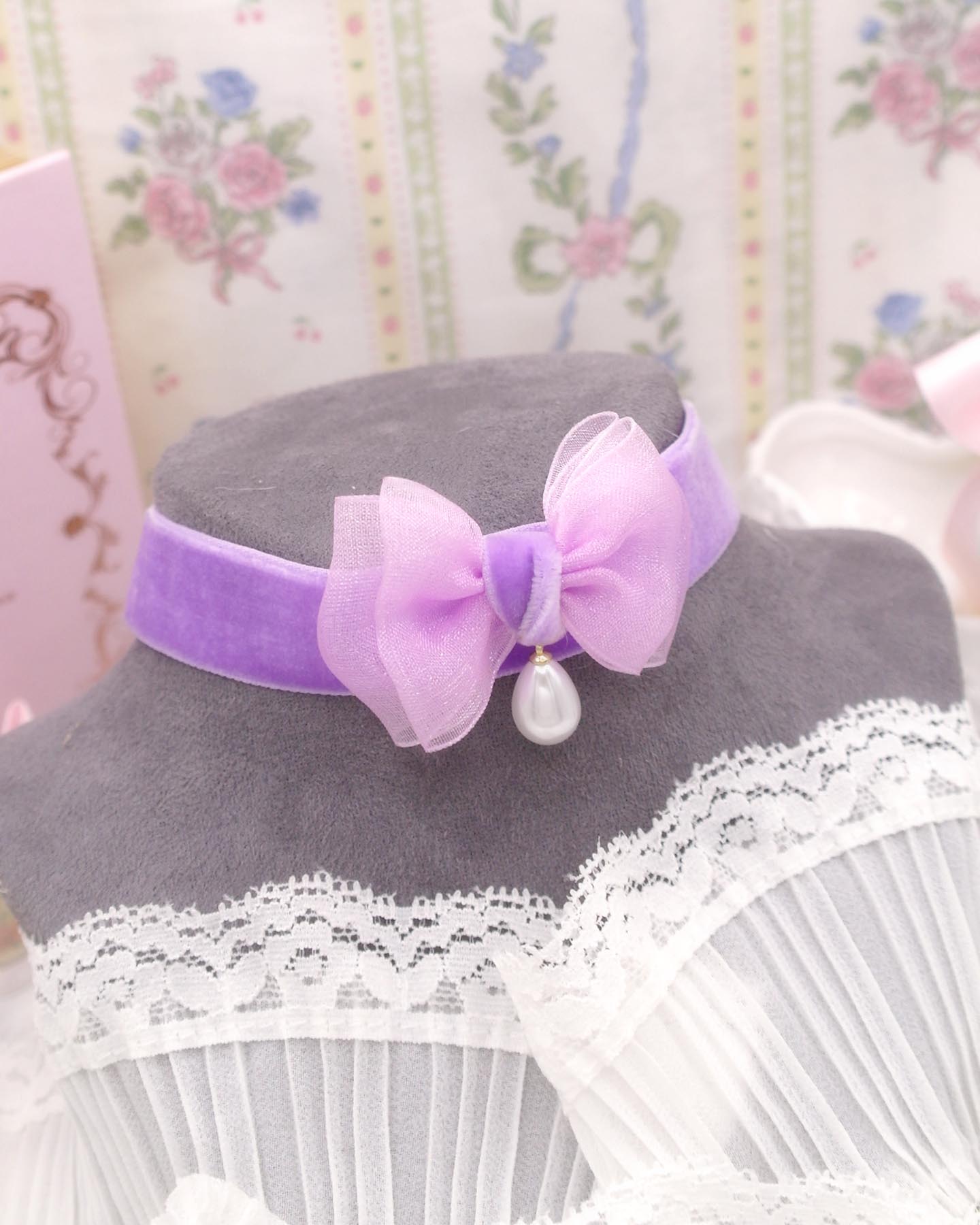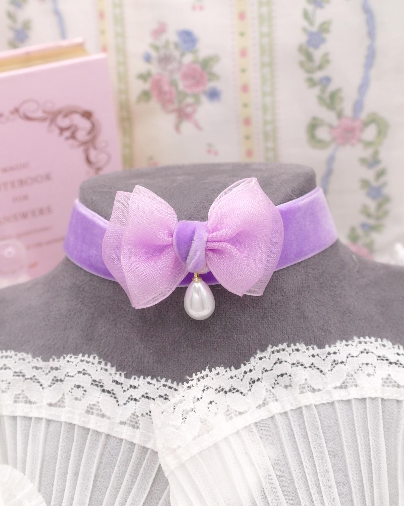 Be the first to review “Lilac Purple Bow Velvet choker necklace, with a faux pearl pendant , elegance bowtie collar jewelry, classic stylish handmade accessories”