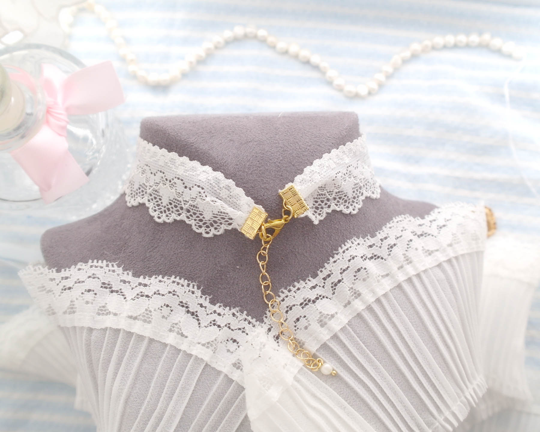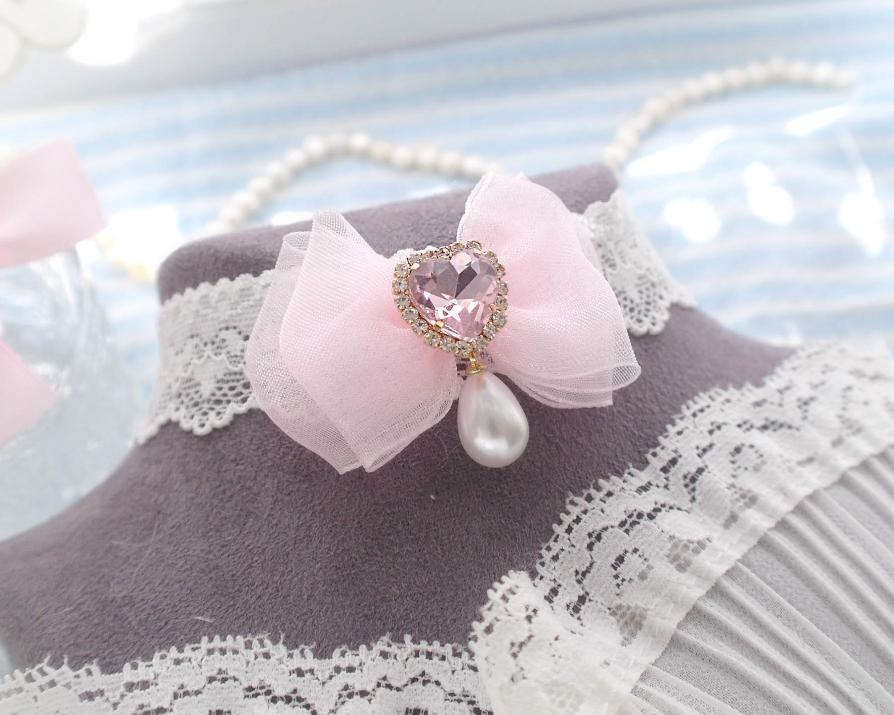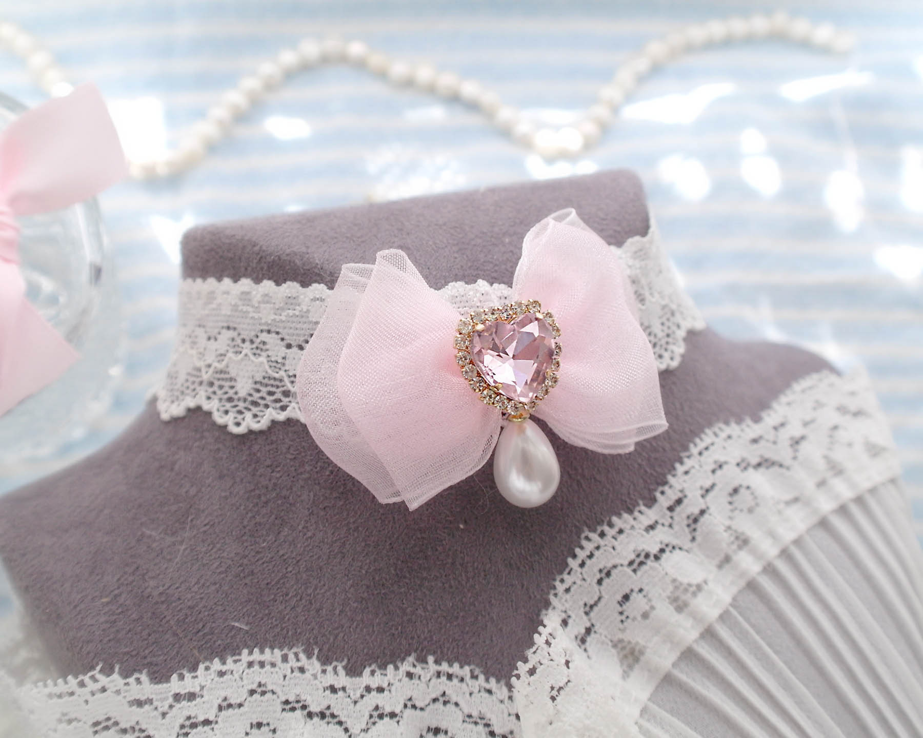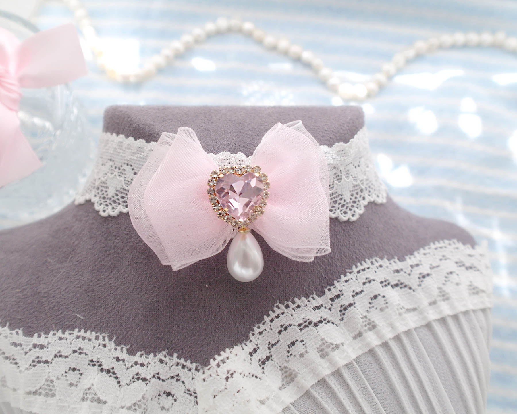 Royal Blue Rhinestone Heart Light Blue Bow White Lace choker necklace , soft girl aesthetic Glam Fairy Princess Core jewelry ,Handmade