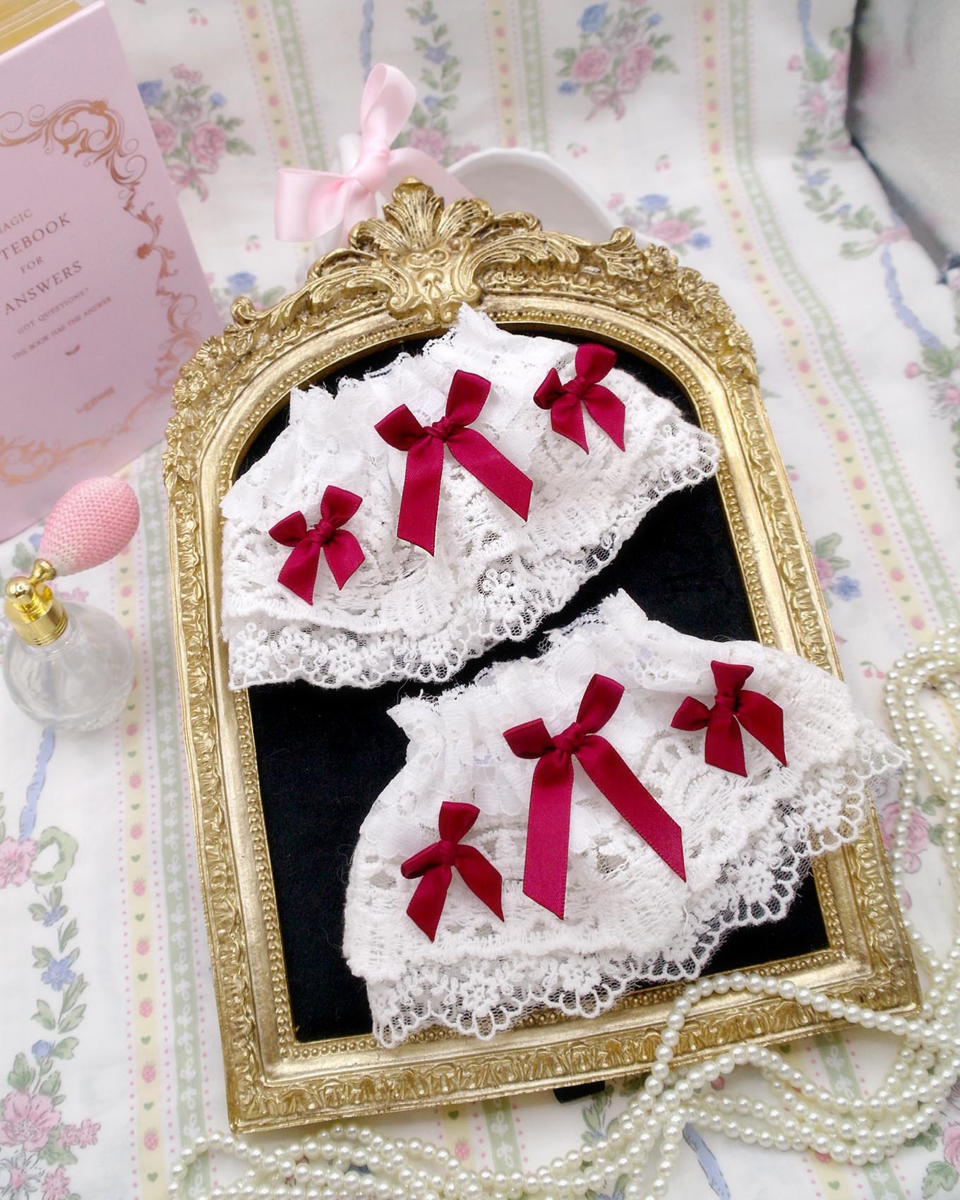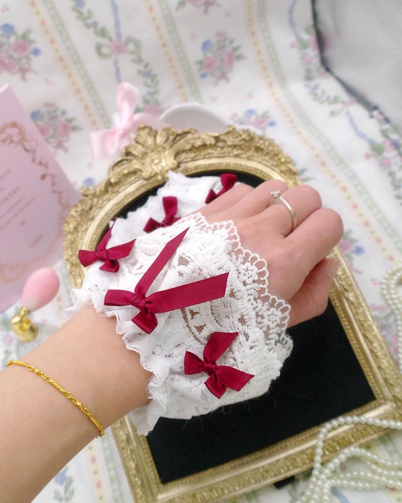 Be the first to review “Set of 2 – Festival Red Bow White Lace Wrist Cuffs Gloves Lace Sleeves , bracelet Victorian Sweet Lolita Style , Soft girl fairy core”