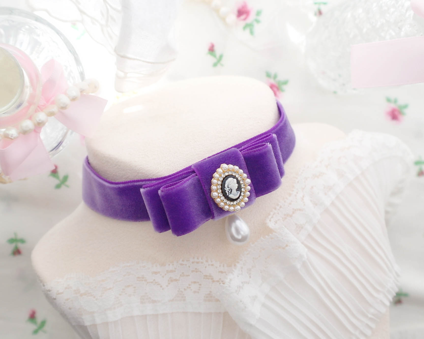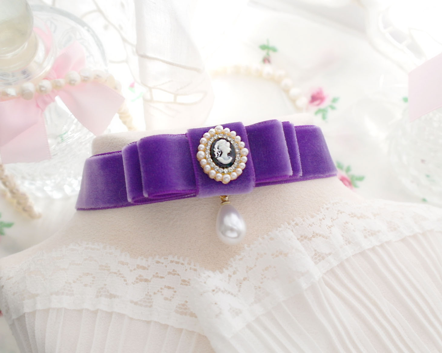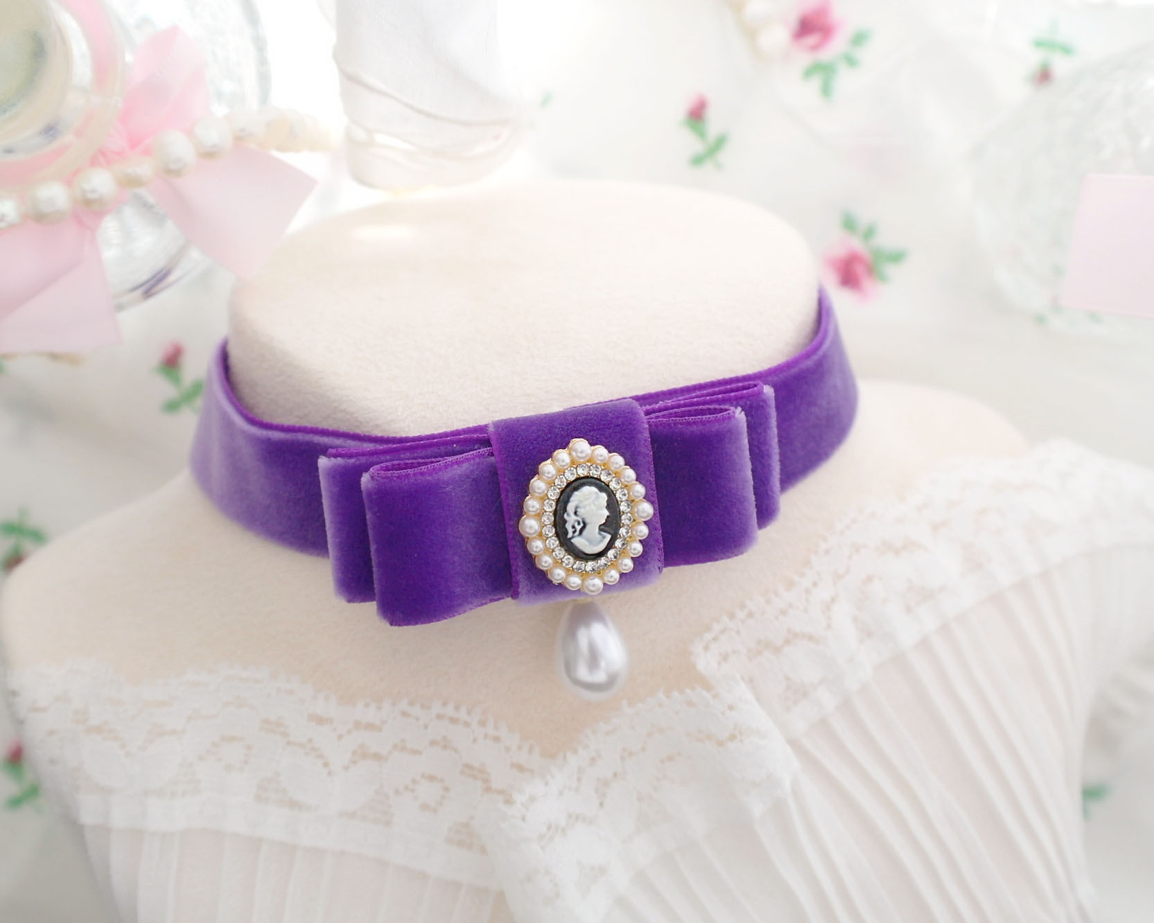 Be the first to review “Victorian Style Cameo Purple Velvet Bow choker necklace , Lady Head Cameo rococo style glam pretty jewelry day collar , Handmade Gift”