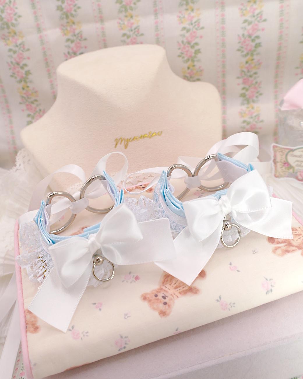 Be the first to review “Wrist Cuffs 2 pcs Set, Baby Blue White Lace Bow Kitten Pet Play Gear Bracelet or ankle cuffs , Kawaii Pastel DDLG Alternative Accessories”